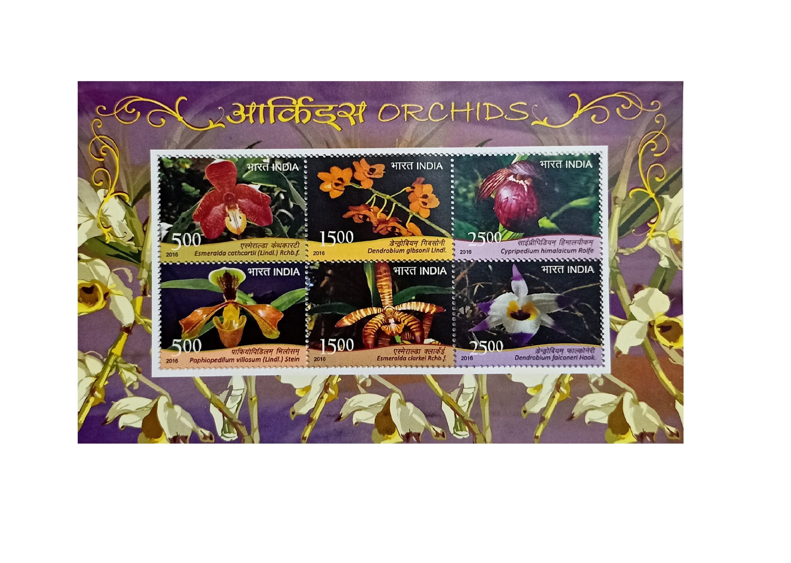 India 2016 Orchids Miniature Sheet 6 Stamps collection real collection indore rci