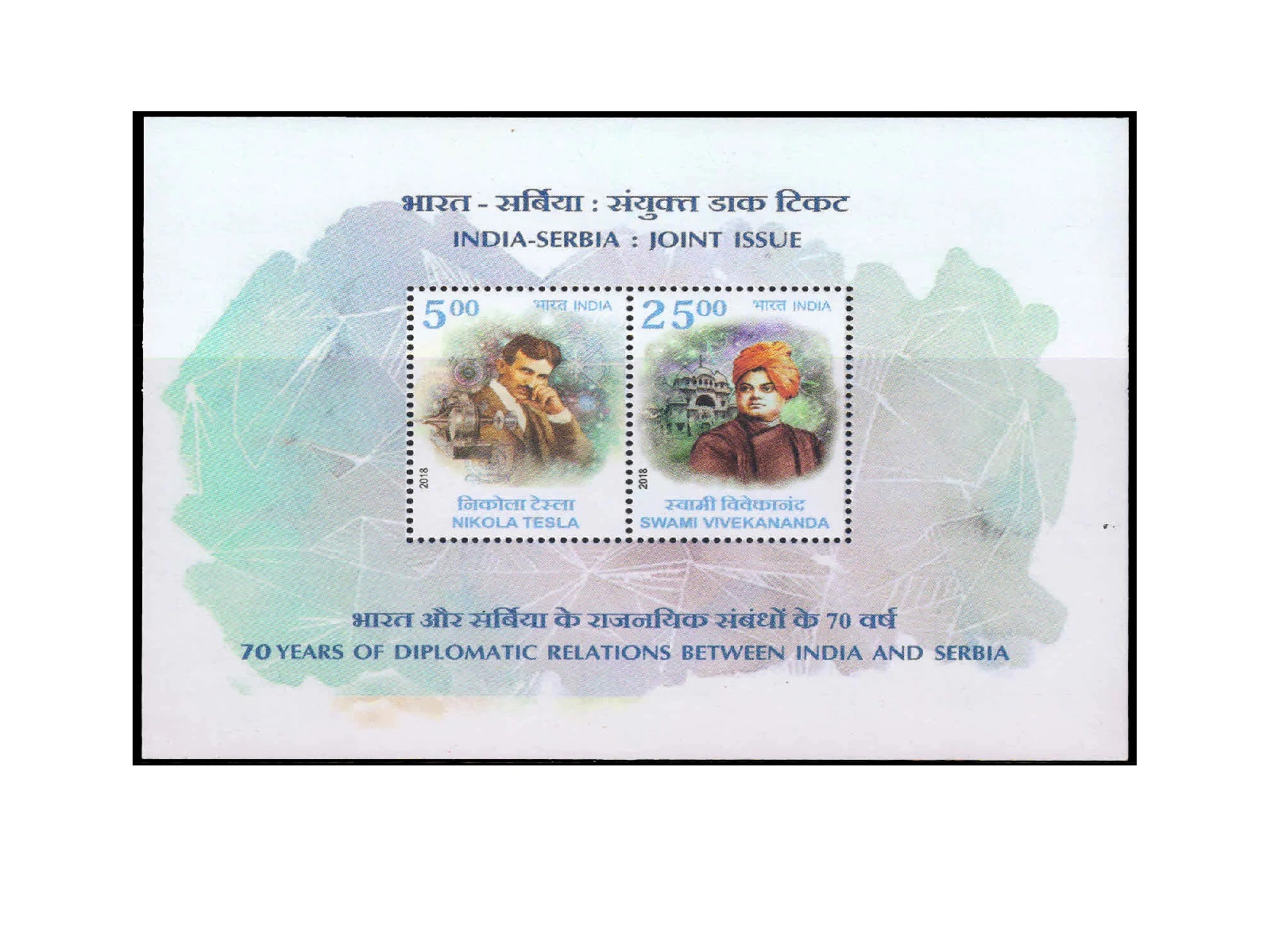 RCI India Serbia Joint Issue, Swami Vivekananda 2018, Miniature Sheet