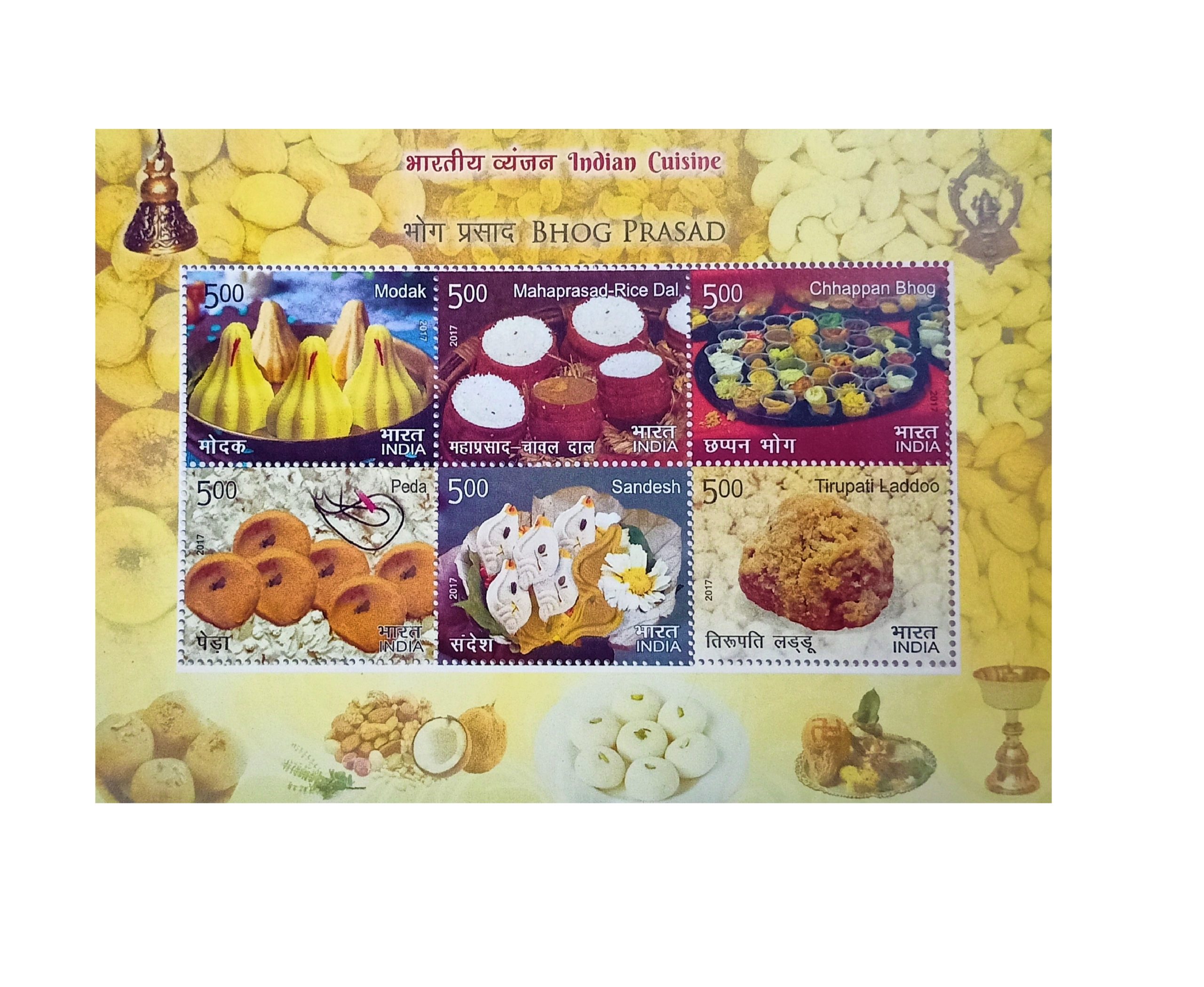 Indian Cuisine: Bhog prasad Miniature sheet & stamps collection